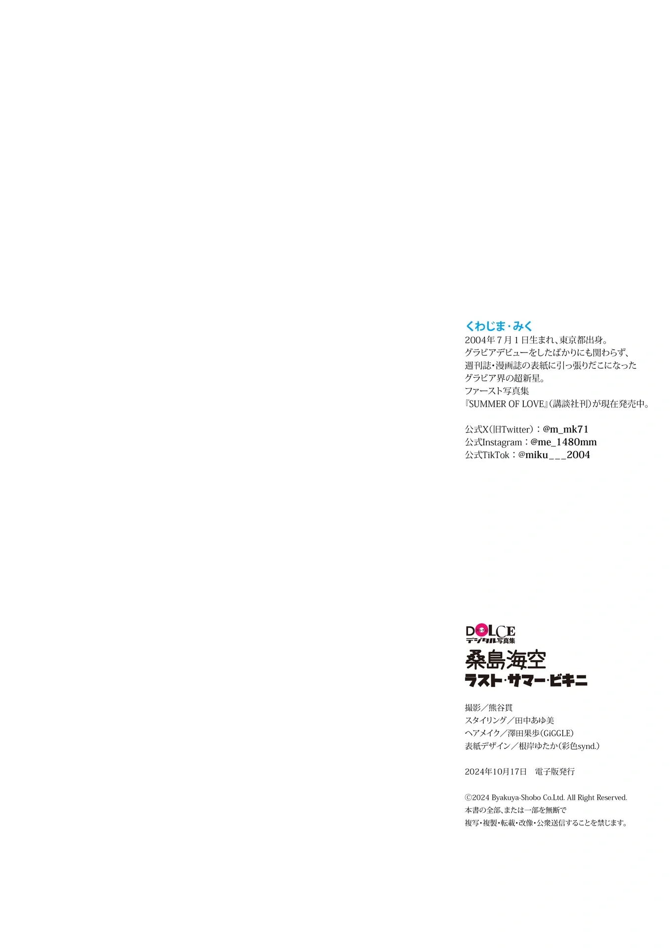 [JP] Miku Kuwajima (桑島海空) - 「ラスト・サマー・ビキニ」 DOLCEデジタル写真集